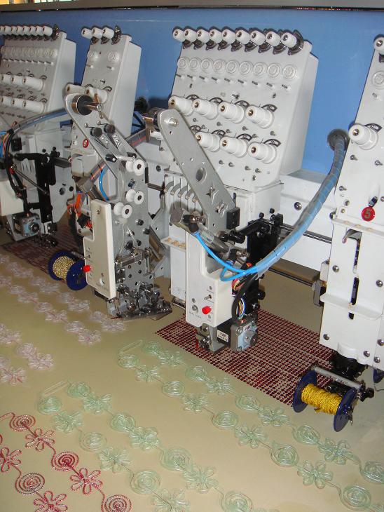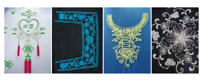 簡易刺繡系統(tǒng)。其在平繡基礎上,增加了分頭控制簡易盤帶繡(盤帶 繡和鋸齒繡等)的功能,基本實現(xiàn)了傳統(tǒng)盤帶繡的所有功能,繡作效 果也有顯著提高,更好地滿足了實際繡作過程的需要。不占用單獨機 頭位,并且和金片裝置一樣,可以加裝在首、末針位置,有效的節(jié)省 空間。安裝方便,簡單易用,運轉速度顯著上升,補繡質量和生產(chǎn)效 率也得到很大提高,真正實現(xiàn)了速度與繡品質量的完美結合, |